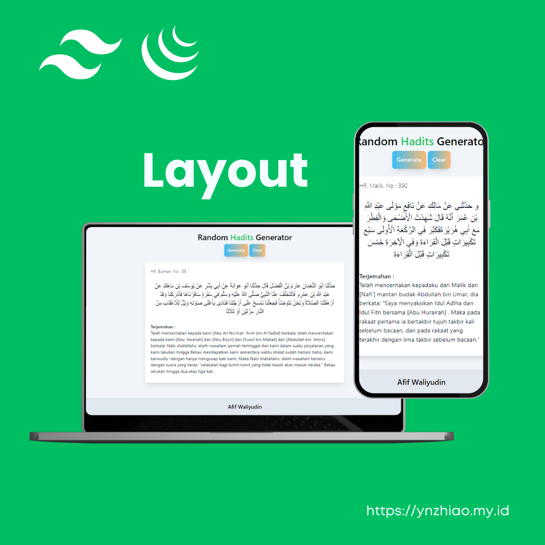 Projek Random Hadits Generator ini merupakan projek sederhana yang dikembangkan menggunakan HTML, Tailwind CSS, Ajax jQuery, dengan mengconsume API gratis dari https://api.hadith.gading.dev.