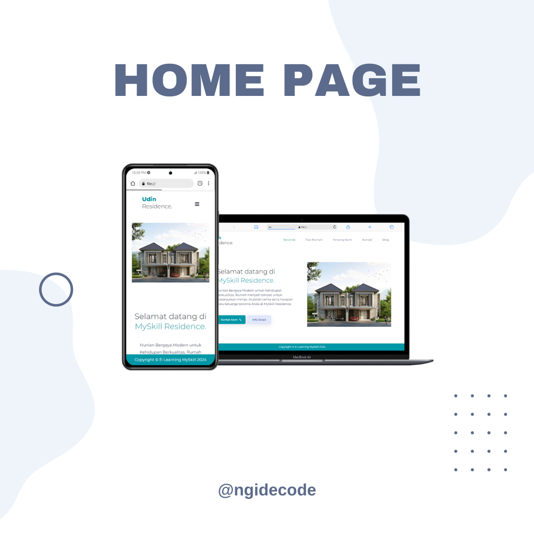 Ikhtisar Proyek: Dalam proyek ini, saya mendesain dan mengembangkan aplikasi web responsif, "Residence Property Web", untuk menampilkan dan memfasilitasi penjualan properti residensial. Dengan menggunakan HTML, CSS, dan JS, saya menciptakan antarmuka yang menarik dan ramah pengguna yang dapat beradaptasi dengan mulus pada berbagai perangkat dan ukuran layar.