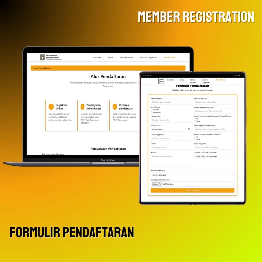 Sistem pendaftaran online untuk calon anggota baru yang memudahkan proses rekrutmen dan pencatatan data anggota.