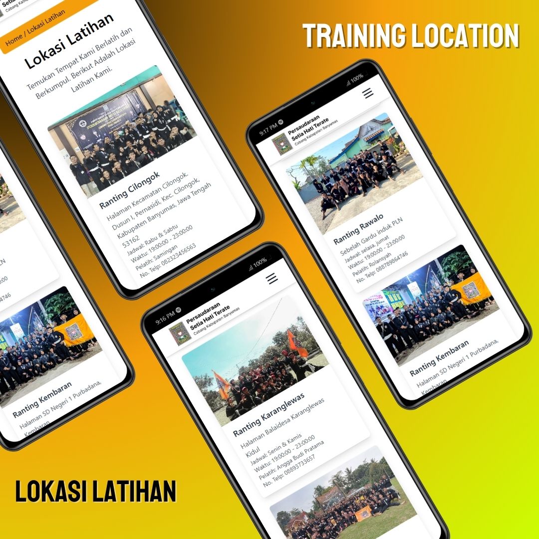 Menampilkan daftar lokasi tempat latihan PSHT yang tersebar di berbagai wilayah, lengkap dengan informasi alamat dan jadwal.